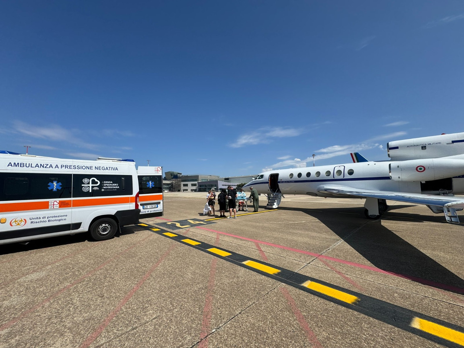 Nel primo caso, una neonata di appena 18 giorni, in imminente pericolo di vita, è stata trasportata dall’aeroporto di Cagliari-Elmas a quello di Roma-Ciampino per un successivo ricovero al Policlinico “Gemelli”.