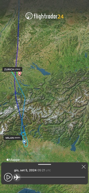 Il volo LH246 da Francoforte con A320come si vede e’ atterrato a Zurigo. Prima di farlo ha compiuto die brevi holding sul lago Maggiore.