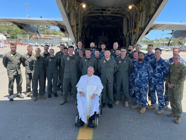 Questo e’ l’aereo della Royal Australian Air Force utilizzato per gli spostamenti interni di Papa Francesco da Port Moresby a Vanimo.