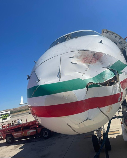 Il successivo volo, quello di ritorno della RAM – Royal Air Maroc e’ stato cancellato per i danni riportati all’E190 in foto prima dell’arrivo a Madrid.