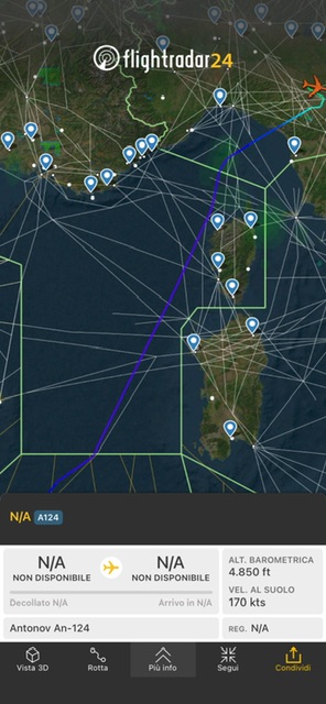 Senza categoria Un Antonov 124 verso Bologna Pubblicato da Italiavola il 20 settembre 2024 E’ in questo momento in arrivo a Bologna un Antonov 124-100. L’aereo e’ di Antonov Airlines. Il velivolo e’ decollato da Algeri. La ripartenza e’ prevista pare in nottata. Condividi: Fai clic per condividere su Facebook (Si apre in una nuova finestra) Facebook Fai clic qui per condividere su LinkedIn (Si apre in una nuova finestra) LinkedIn Fai clic qui per condividere su Reddit (Si apre in una nuova finestra) Reddit Fai clic qui per condividere su Pinterest (Si apre in una nuova finestra) Pinterest Fai clic qui per condividere su Tumblr (Si apre in una nuova finestra) Tumblr Fai clic per condividere su X (Si apre in una nuova finestra) X Mi piace Caricamento... Correlati