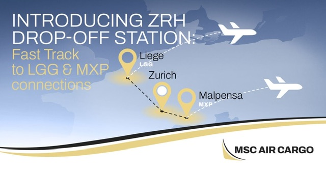 Zurigo entra nel network MSC Air Cargo grazie alla possibilita’ di ricevere o inviare merce con collegamenti via superficie verso Liegi e Milano Malpensa.