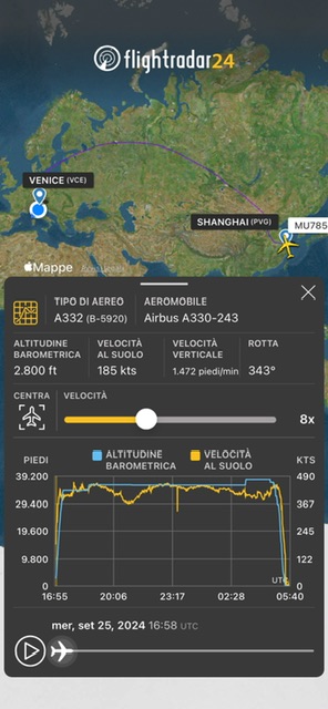 E’ un aereo celebrativo , il Worldskill Shark ad aver effettuato il volo MU786 che questa notte ha impiegato 12 ore e 28 minuti , grazie alla possibilita’ di sorvolare lo spazio aereo russo, che accorcia di tanto il viaggio.