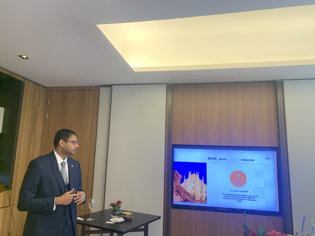 Sul breve nel piano operativo di Singapore Airlines, Aswin K ha detto “per il prossimo inverno 2024/25 voleremo da Milano su Singapore tutti i giorni, tre volte alla settimana su Barcellona e quattro voli settimanali su Roma Fiumicino. L’aereo impiegato su entrambe le direttrici é l’Airbus 350-900 con 42 posti in business class, 24 in premium economy e 187 in economica.