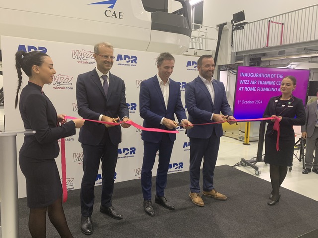 La cerimonia di inaugurazione si è tenuta oggi, 1° ottobre 2024, con gli interventi del CEO di Wizz Air Jozsef Varadi, del CEO di Aeroporti di Roma Marco Troncone e del Vice President, EMEA Commercial Aviation di CAE James Cahill.