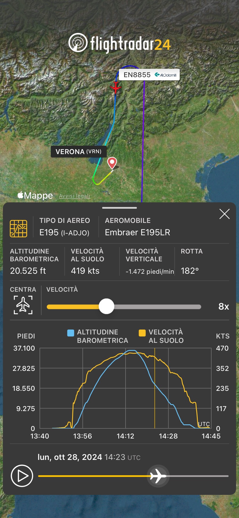 Il volo era il Firenze-Francoforte con il volo EN8855 che a circa 40 miglia nautiche nord nord est di Verona a FL360 h invertito la prua virando a sinistra e da FL360 in 15 minuti è atterrato all’aeroporto scaligero per pista 04.