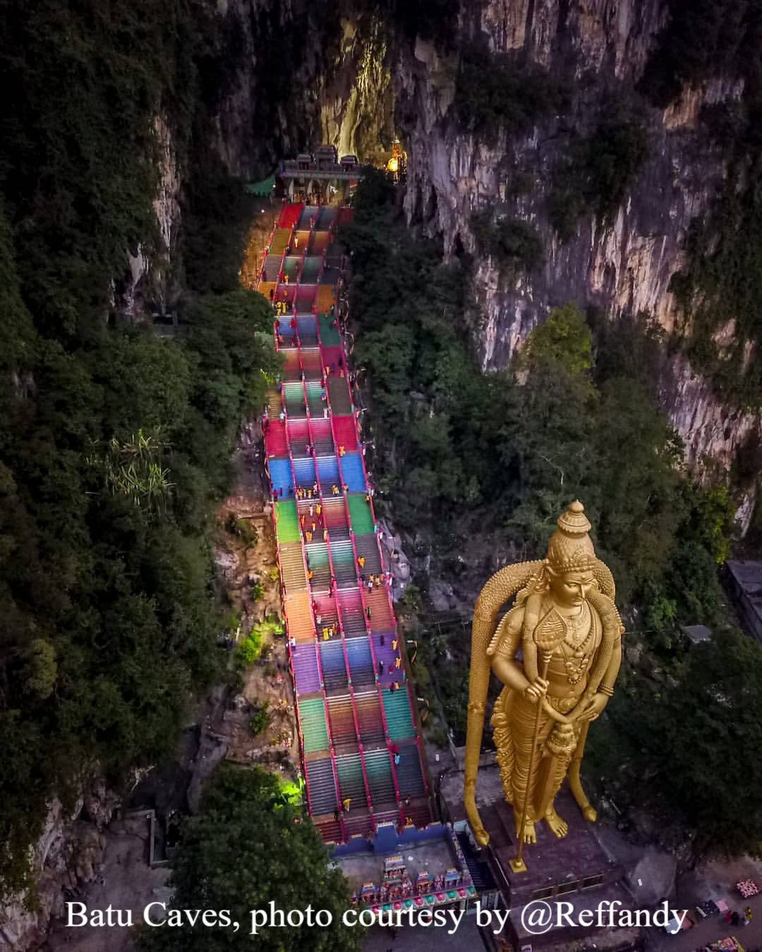 | Batu Caves Una delle attrazioni più visitate in Malesia, potreste aver già visto le foto delle scale colorate delle Batu Caves, la grande statua di Lord Murugan che sorveglia l’ingresso, i templi colorati delle Batu Caves e le grotte in cima. Ma meglio vederle di persona! Le Batu Caves si trovano fuori Kuala Lumpur, a circa 13 chilometri dal centro, e sono situate su un tipo di collina ripida fatta di calcare, marmo o dolomite. Si pensa che questa formazione calcarea abbia circa 400 milioni di anni ed è uno spettacolo ai margini dell’enorme Kuala Lumpur Le grotte trovate furono utilizzate per la prima volta dagli umani come rifugio dalla popolazione indigena.Intorno al 1860, i coloni cinesi iniziarono a prendere il guano trovato qui (escrementi di pipistrello) per fertilizzare i loro giardini. Nel 1890, Pillai, il fondatore del tempio Sri Mahamariamman a Kuala Lumpur, installò la statua consacrata di Sri Murugan Swami nella grotta del tempio. La statua è alta 42,7 metri e ci vollero tre anni per costruirla. I gradini delle grotte di Batu sono dipinti con colori accesi e potrebbero essere la parte più nota delle grotte di Batu. Sapete quanti sono gli scalini? 272! E non c’è altro modo per salire ai templi… Un bell’esercizio fisico!Le scale sono in buone condizioni, con un corrimano, quindi è abbastanza facile da fare. Attenzione ai macachi, curiosi e dispettosi! |