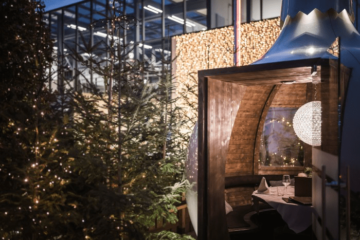 | Nuovo SkyBar, Kugln Terme e nuovi spazi per il NataleÈ la novità del Natale 2024 delle Terme Merano: un secondo SkyBar aprirà, a un piano rialzato, accanto a quello esistente. La struttura è tutta in legno e in armonia con le altre aree, con tavolini e braceri per il massimo comfort. Come per lo SkyBar esistente, ci si potrà dedicare una sosta per una bevanda calda, per un aperitivo con finger food prima di cena. Da non perdere ogni sabato l’appuntamento con il “Christmas Aperitif” per un momento di festa insieme godendosi il panorama. La vista dall’alto infatti sarà ancora più bella, dal momento che tutto lo spazio dedicato al Natale viene ridisegnato in modo innovativo, elegante e ancora più funzionale. Tavolini dalla linea essenziale, lampade riscaldanti di design, ampi tavoli con il fuoco al centro e moderne sedute si alternano nella pedana in legno antistante le Terme Merano, dando vita a un ambiente confortevole per una pausa golosa. Al centro un grande bracere rotondo allestito per ospitare altri commensali. Il tutto nello stile raffinato che contraddistingue da sempre tutti gli spazi delle Terme Merano. Più in là, disposte in una fila ordinata, fanno bella mostra le esclusive Kugln Terme. Ristorantini intimi per poche persone sedute intorno al grande tavolo centrale, in un ambiente caldo e comodo, con musica di sottofondo e una luce personalizzabile che proviene da un lampadario di design, ogni volta diverso, in armonia con i differenti stili e colori delle Kugln Terme. Il menu viene rinnovato ogni anno con piatti sempre nuovi, originali e creativi, che valorizzano le materie prime altoatesine, accompagnati a una selezione di pregiati vini. Bellezza, eleganza e funzionalità si fondono insieme nella nuova piazza del Natale, regalando agli ospiti un’esperienza sempre più unica e speciale. |