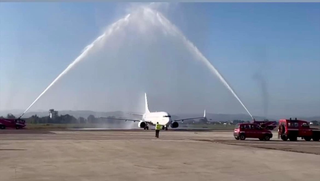 Il water cannon salute é stato tributato ad uno di quei velivoli.
