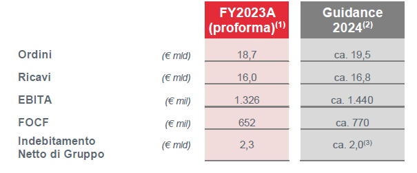 (1) I valori esposti per l’anno 2023 valorizzano il consolidamento integrale di Telespazio, effettivo dal 2024.