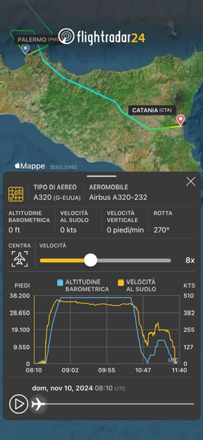 Il volo BA610 é di ritorno a Palermo , l’atterraggio é previsto poco dopo le 15.