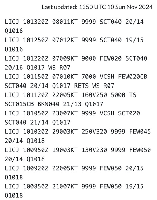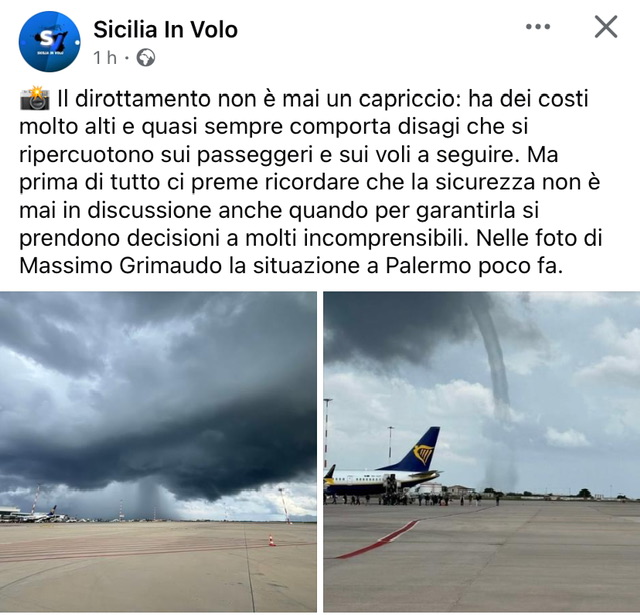 Il meteo oggi a Palermo é perturbato, anche altri aerei hanno effettuato tentativi di avvicinamento per pista 25 e un successivo per la 20. Questa pista é stata in uso per un lasso di tempo. Ora si effettuano da 07.