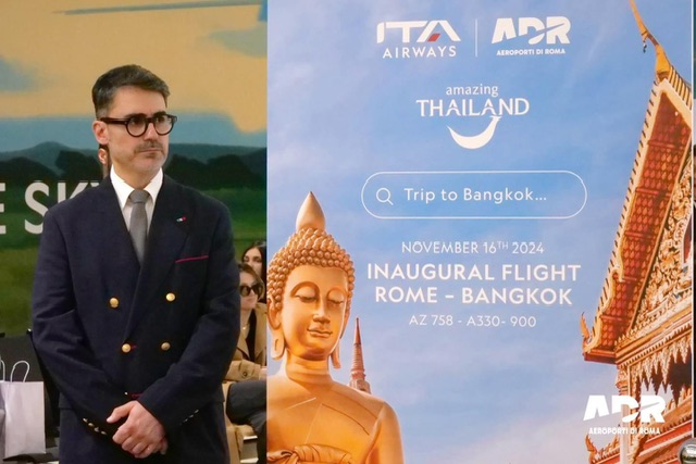 Da ieri c’é nuovamente il volo diretto tra Roma e Bangkok. E’ ITA Airways, che ha deciso di assumersi il rischio finanziario di aprire questa rotta per colmare il gap che secondo Federico Scriboni – aviation business manager di ADR ha un volume di 400mila viaggiatori.