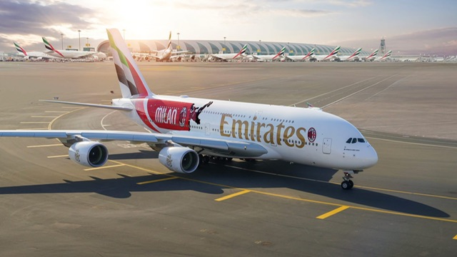 I fans dei rossoneri potranno vedere i colori della loro squadra viaggiare in ogni angolo del mondo dove questo A380-800 verrà impiegato da Emirates.
