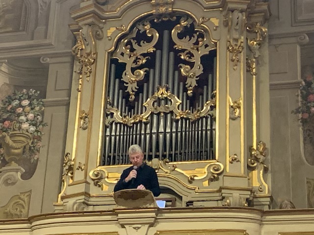 Tornando al concerto di Griffiths a Bologna sono stati nove i brani che ha proposto con l’uso dello straordinario organo della Basilica di San Domenico a Bologna. Vari gli autori che spaziano dal Rinascimento ai giorni nostri. A partire da Thomas Tomkins, Orlando Gibbons, Girolamo Frescobaldi, Johannes Brahms, Guy Bouvet. Quest’ultimo nato nel secolo scorso. Poi in chiusura due brani sono stati composti dalla moglie Joanna Marsh, insegnante e compositrice. Uno di questi era inedito “Dusk at San Domenico” e composto per questa occasione come World Premiere. L’ultimo era di Huw Morgan.