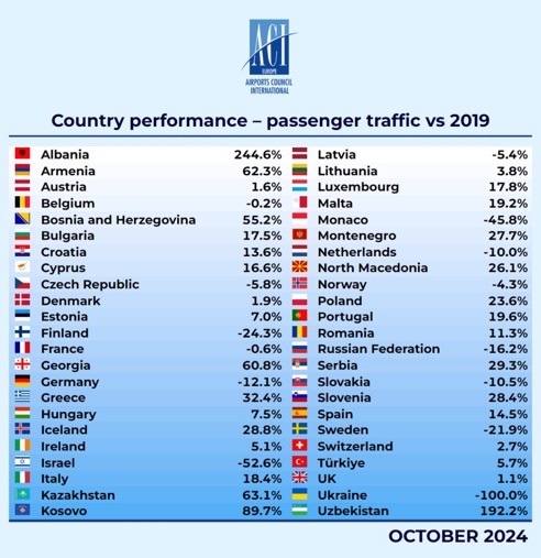 Questo é quello che ci consegna la statistica di ACI Europe, l’associazione che riunisce i gestori degli aeroporti europei.