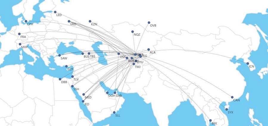 Secondo quanto riporta CentralAsiaPlusAero l’aerolinea uzbeka Centrum Air é al centro di un forte piano di espansione, che con il metodo hub and spoke la porterà nel 2025 anche a sbarcare in Europa.
