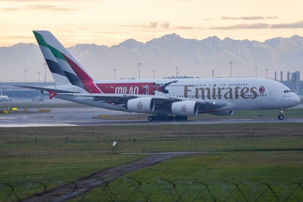 É finalmente arrivato anche a Milano Malpensa l’A380-800 colorato AC Milan. L’aereo é giunto oggi da Dubai come EK205 e poi ripartito con lo stesso numero di volo per New York JFK.