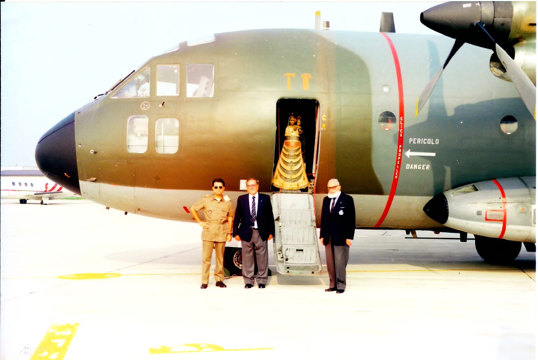 In questa foto di Lucio Alfieri si vede la Madonna a bordo di un G222 dell’Aeronautica Militare.