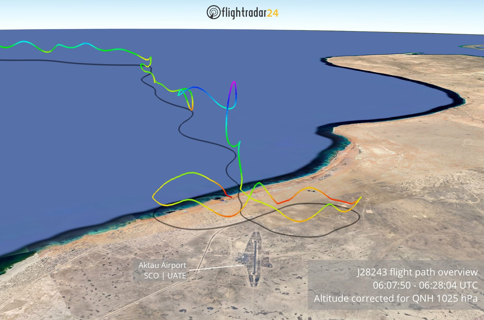 Insomma, a quel punto, poco prima di arrivare alla costa kazaka, il velivolo é riemerso con lo sqwak 7700 inserito. In quell’area viene attuato uno spoofing sui sistemi GPS per impedire gli attacchi ai droni. L’aereo invece era ben visibile dall’ATC sia russo , che kazako. Solo vicino ad Aktau l’aereo e’ ricomparso con il segnale ADSB.