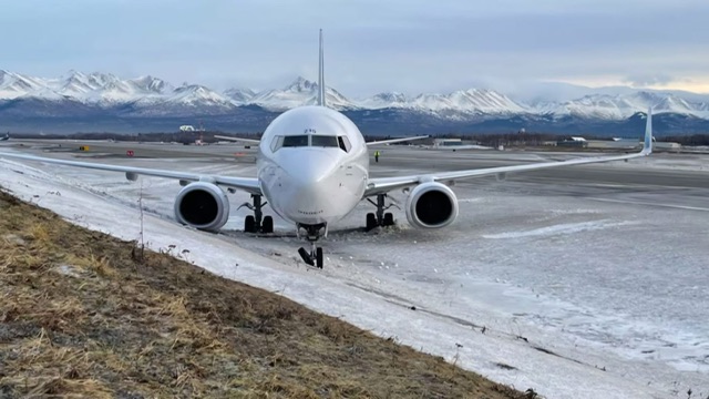 Questo Boeing 737-900ER della compagnia aerea americana Alaska Airlines ad Anchorage in Alaska e’ scivolato sul ghiaccio e ha terminato la corsa in un accumulo di neve ghiacciata e ha dannneggiato seriamente il carrello anteriore nella sua integrità e funzionalità. Come si vede il pneumatici destro e’ storto e quindi il danno ne ha compromesso l’efficenza. La riammissione al servizio avverrà al completamento dell’integrità tecnica dell’aeromobile in altre parti eventualmente danneggiate.