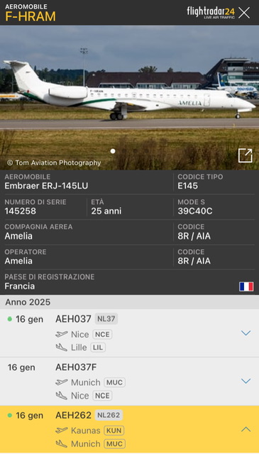 compagnie aeree Charter basket per Virtus Pubblicato da Italiavola il 16 gennaio 2025 Amelia con ERJ145 da Bologna a Kaunas per il match contro lo Zalgiris. Lo stesso aereo con marche F-HRAM e’ poi partito per Monaco per un altro incontro internazionale di coppa. Condividi: Fai clic per condividere su Facebook (Si apre in una nuova finestra) Facebook Fai clic qui per condividere su LinkedIn (Si apre in una nuova finestra) LinkedIn Fai clic qui per condividere su Reddit (Si apre in una nuova finestra) Reddit Fai clic qui per condividere su Pinterest (Si apre in una nuova finestra) Pinterest Fai clic qui per condividere su Tumblr (Si apre in una nuova finestra) Tumblr Fai clic per condividere su X (Si apre in una nuova finestra) X Mi piace Caricamento... Correlati