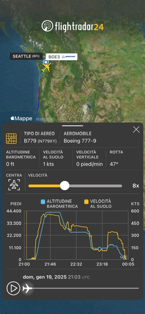 Tra il 7 ed il 15 agosto aveva effettuato un’attività di volo molto intensa. Poi uno stop ed il 6 settembre aveva fatto un volo Kailua-Kailua e due giorni dopo era rientrato a Seattle.
