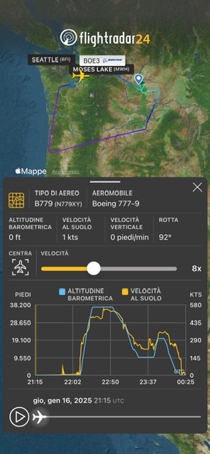 Tra il 7 ed il 15 agosto aveva effettuato un’attività di volo molto intensa. Poi uno stop ed il 6 settembre aveva fatto un volo Kailua-Kailua e due giorni dopo era rientrato a Seattle.