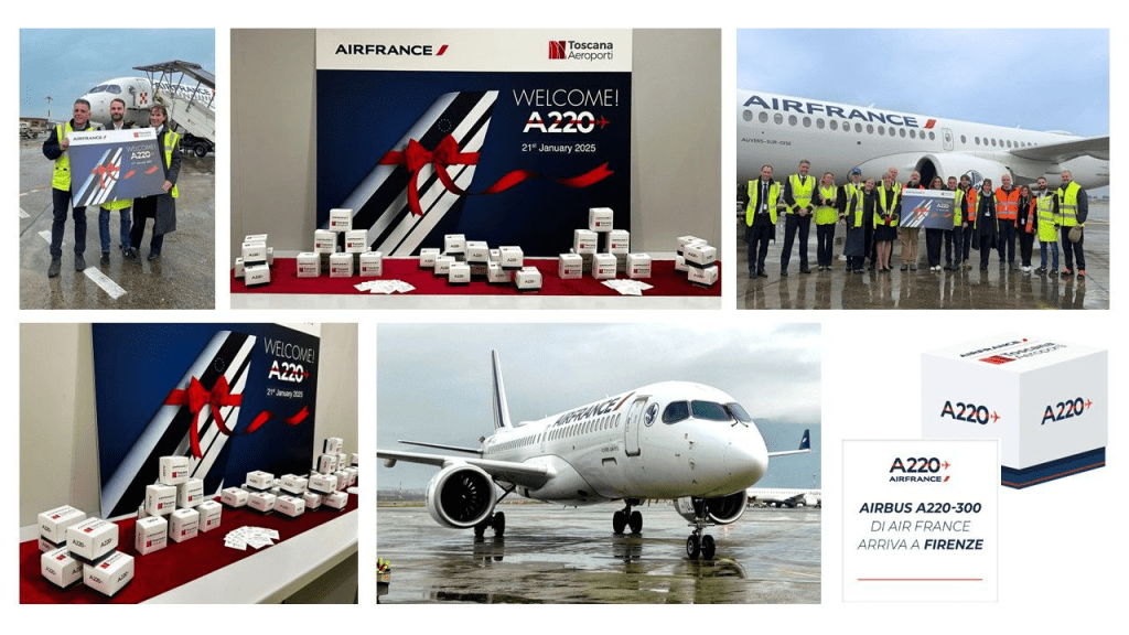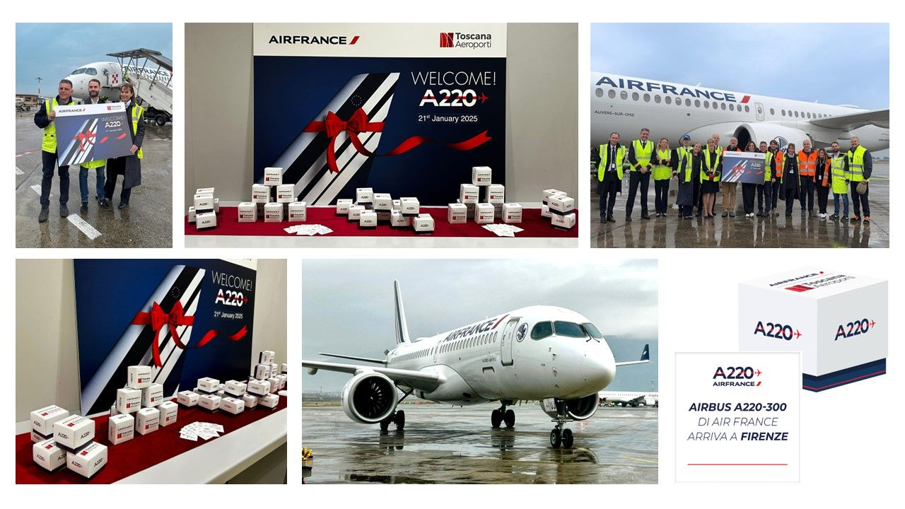 Air France e Toscana Aeroporti hanno celebrato oggi l’ingresso dell’Airbus A220-300 nella programmazione del vettore per Parigi-CharlesDeGaulle, dallo scalo “A. Vespucci” di Firenze. Il nuovo aeromobile, previsto su specifiche rotazioni, è il gioiello della flotta della compagnia sulla sua rete di corto e medio raggio. Grazie ad una una riduzione del 20% delle emissioni di CO2 e un impatto acustico ridotto del 34%, l’Airbus A220-300 si conferma come una risorsa importante per Air France nell’ambito del programma di rinnovo flotta per migliorare le sue prestazioni economiche ed ambientali.