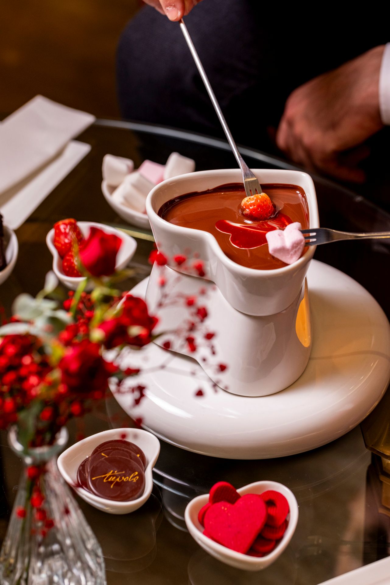 Il Tiepolo Lounge & Terrace del Rome Cavalieri, immerso nella collezione d’arte privata dell’albergo, crea un’atmosfera calda e affascinante per celebrare il weekend di San Valentino. In questa occasione speciale, è possibile gustare la deliziosa “Amour fondue” di cioccolato, accompagnata da frutta fresca e piccola pasticceria artigianale dell‘Executive Pastry Chef Dario Nuti. Per gli amanti della mixology, il Bar Manager Angelo Severini propone cocktail “Odi et Amo“, che unisce la forza della Vodka Absolut e del Cointreau con la dolcezza della purea di lampone e la freschezza del lime, per un’esplosione di sapori che seduce e sorprende.