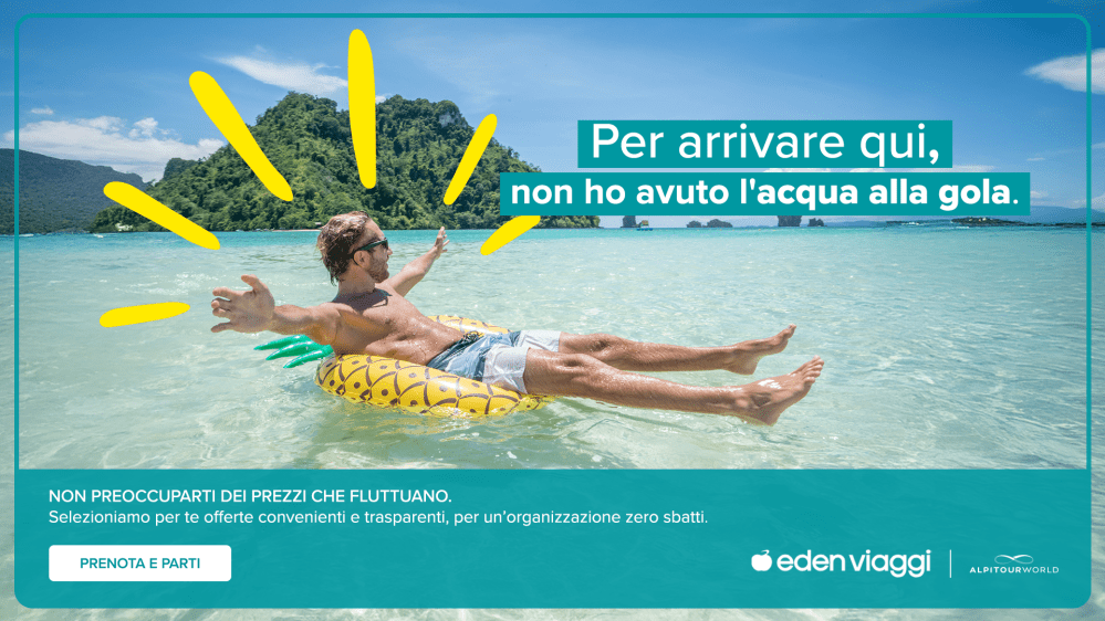 “Abbiamo anticipato la nostra campagna di qualche settimana rispetto allo scorso anno per rispondere alle nuove abitudini di prenotazione dei viaggiatori” – afferma Tommaso Bertini, Chief Corporate & Tour Operating Marketing Officer – “Attraverso il concept creativo di questo spot vogliamo ribadire, in modo ironico e divertente, quanto possa essere complicato organizzare una vacanza in autonomia tra opzioni, tariffe e servizi da considerare. Aspetti senza dubbio importanti che possono risolversi con leggerezza e semplicità, grazie all’esperienza e professionalità di un Brand come Eden Viaggi che offre voli e hotel selezionati, prezzi leggeri e assistenza garantita”.