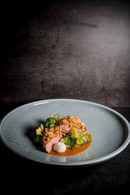 Ogni giorno lo chef e la sua brigata preparano dalle 12 alle 14 portate diverse, che vengono proposte agli ospiti all’’interno del menu gourmet. Ricercate pietanze che vanno dall’antipasto al dolce, mixando tradizioni alpine con suggestioni internazionali, dalla leggerezza asiatica all’intensità mediterranea. Sapienti accostamenti sorprendono gli amanti della raffinatezza, in un ambiente accogliente ed elegante. La simbiosi con la natura, che caratterizza l’intera struttura del Tenne Lodges & Chalets, trova la sua rappresentazione perfetta nella proposta gastronomica, in grado di far incontrare passato e presente in una combinazione dal gusto unico. Creazioni come la piccata di zucchine e formaggio di montagna con pomodorini sciolti e rucola, il maialino da latte salmistrato con radice di prezzemolo e semi di senape o “Schmarrn” di noci con prugna e yogurt sono una gioia per gli occhi e per il palato.