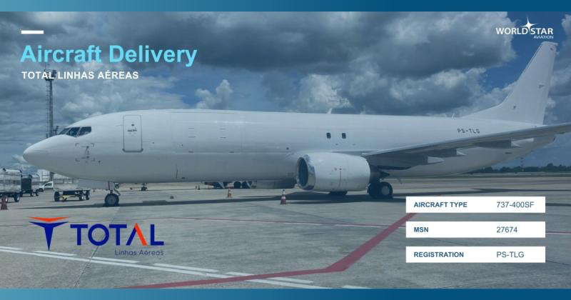 World Star Aviation è orgogliosa di annunciare la consegna del quarto Boeing 737-400SF a Total Linhas Aéreas, un operatore di trasporto merci leader in Brasile, rafforzando così l’impegno di WSA con il mercato del trasporto aereo sudamericano.
