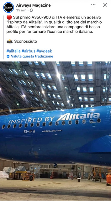La settimana scorsa su domanda da parte della stampa, i nuovi vertici di ITA Airways insieme al CEO Lufthansa Group Spohr, avevano parlato di un futuro utilizzo del marchio Alitalia nel futuro senza dare riferimenti temporali certi. Anche se era stato riconosciuta la valenza e importanza specie nel mondo di quanto ha costituito il marchio Alitalia. Non a caso vedendo su che tipo di aereo e’ ricomparso, e’ quello di un aereo a Lungo raggio.