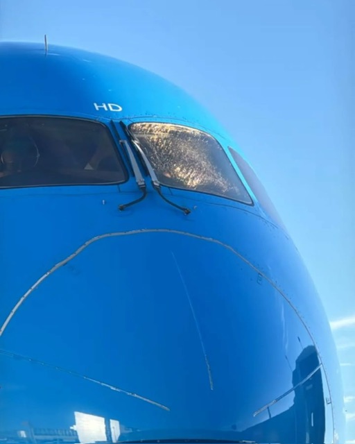 La foto mostra cio’ che e’ accaduto a questo Boeing 787-9 della KLM , il quale nella giornata di ieri mentre operava il volo KL759 da Amsterdam a San José de Costa Rica ha visto progressivamebte deteriorarsi il windshield sinistro, quello del posto del Comandante.