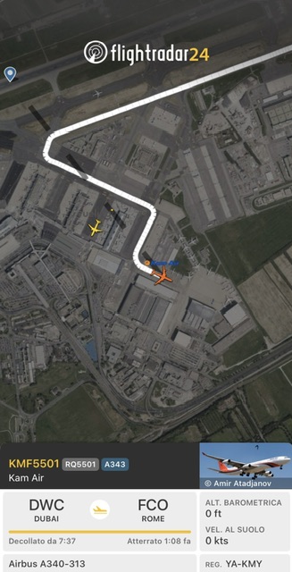 Questo aereo della compagnia aerea afgana Kam Air e’ arrivato da poco a Roma ed e’ proveniente da Dubai World Central.