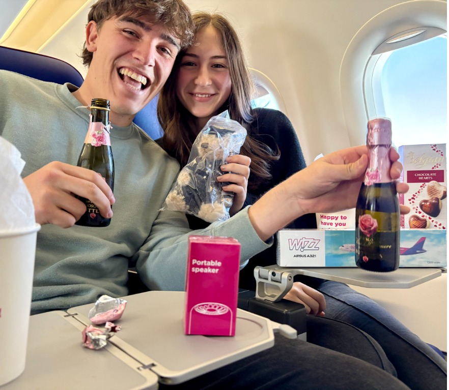 Tra coloro che viaggiavano il 14 febbraio, Wizz Air ha selezionato sette coppie in partenza da Varsavia per Bergamo, da Abu Dhabi per Bucarest, da Madrid per Roma, da Vienna per Barcellona, da Budapest per Parigi, da Tirana per Berlino e da Londra per Praga. Ogni coppia è stata sorpresa con pacchetti regalo a tema San Valentino, che includevano bottiglie di champagne, dolci e souvenir esclusivi di Wizz Air durante il volo. L’obiettivo della compagnia è stato quello di rendere questo San Valentino ancora più speciale per le coppie che viaggiavano insieme in questo giorno particolare.