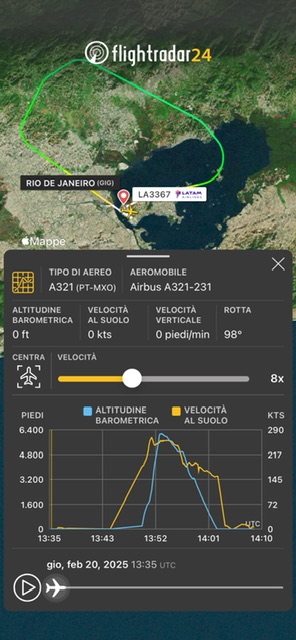 L’equipaggio è stato costretto a interrompere la salita e a tornare all’aeroporto internazionale di Rio de Janeiro Galeão giusto13 minuti dopo dall’involo. Il decollo e’ avvenuto alle 10:50 e l’atterraggio alle 11:03 L’aereo ha subito danni significativi al radome del radar.