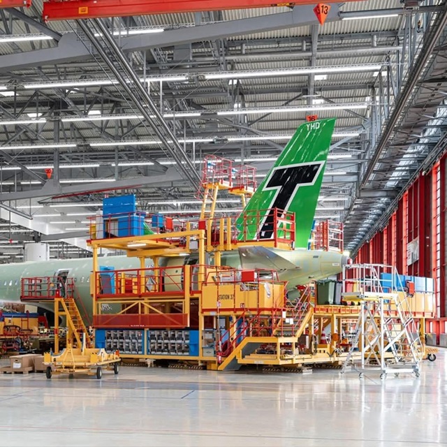Perche’ vediamo il timone gia’ verniciato e non tutto l’aereo? Questa e’ un’altra storia e fa parte di quelle che sono le semplificazioni, che ha scelto Airbus per ridurre i tempi nel suo ciclo produttivo. L’aereo si trova nella linea di produzione ad Amburgo in Germania.