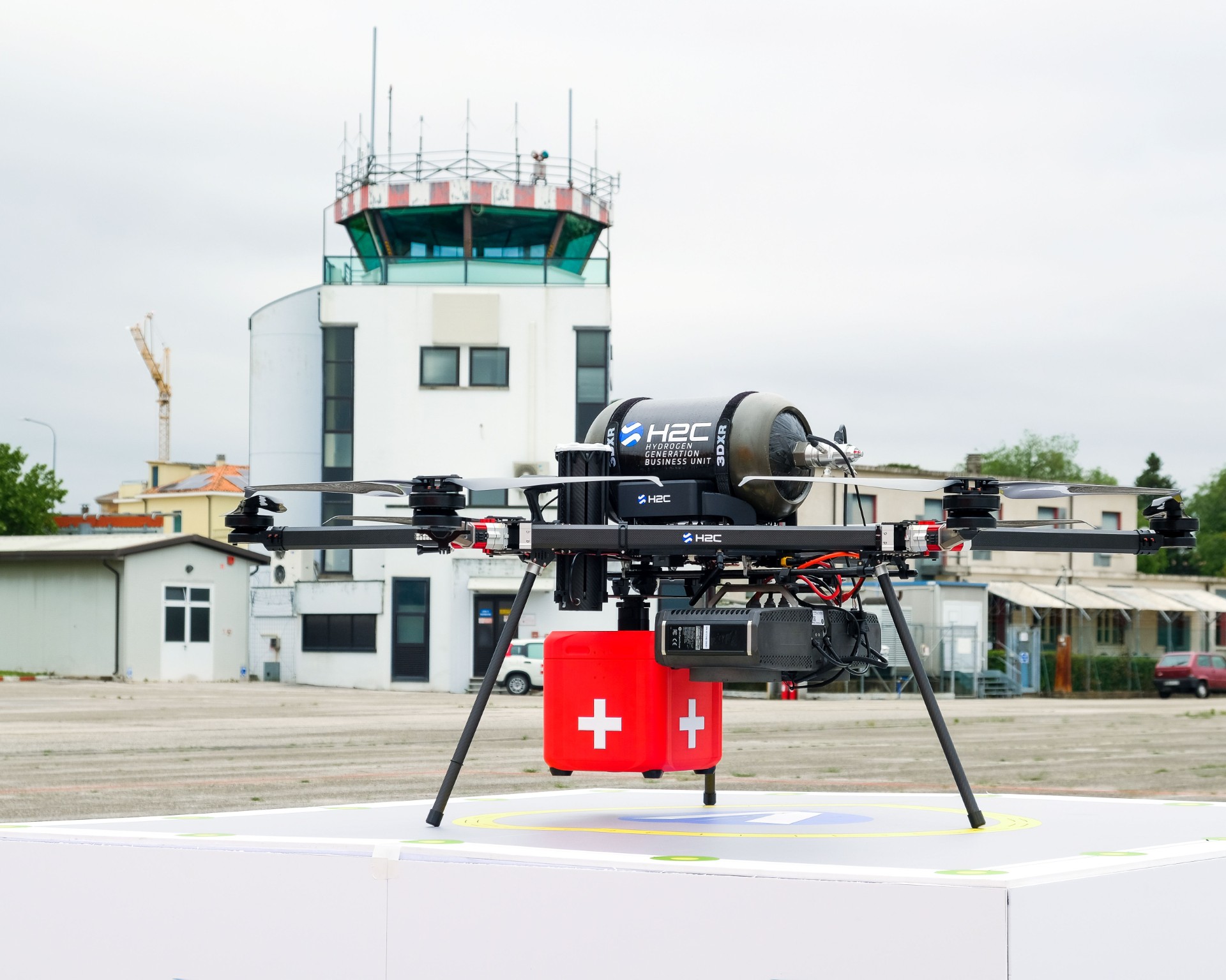 All’aeroporto di Padova il progetto sperimentale “Sandbox” che utilizza i droni a idrogeno di H2C per il trasferimento di merci sanitarie,