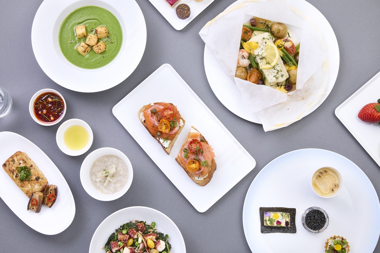 Per le classi premium, selezioni ampliate di amuse-bouche e antipasti creano un’esperienza di degustazione più coinvolgente, mentre i nuovi piatti principali e dessert, come Papillote e Petit Four, aggiungono raffinatezza culinaria e appeal visivo.