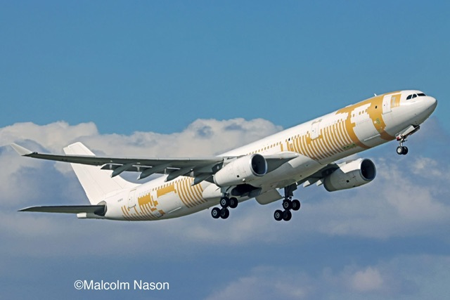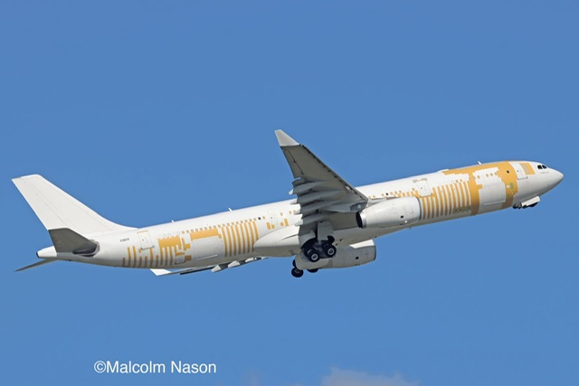 L’aereo nelle immagini e’ transitato in questi giorni da Shannon. Malcolm Nason lo ha fotografato in entrambi i lati e dove e’ privo di verniciatura con i materiali ancora in primer mettono in evidenza l’entita’ degli interventi a livello strutturale. In particolare si vedono chiaramente gli interventi di rinforzo alle centine, che sono le aree dove piu’ si scaricano le forze collegati ai diversi pesi che dovra’ sopportare la struttura con l’impiego. Oltre ai rinforzi effettuati al piano di carico principale. In aggiunta tutta l’area del portellone cargo installato.