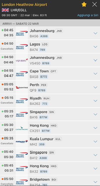 In realtà, l’attività aeroportuale era ripartita Ieri sera dalle 19 in poi quando erano partiti una decina di collegamenti con destinazione una serie di scali molto distanti come la stessa Johannesburg, Cape Town, Buenos Aires, Singapore e Sydney ad esempio.