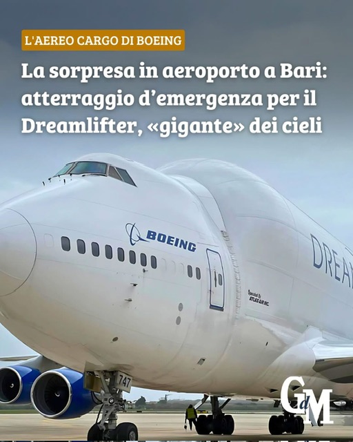 Nella foto del quotidiano pugliese La Gazzetta del Mezzogiorno appare il Boeing 747 Dreamlifter ripreso a Bari in un atterraggio fuori orogramma compiuto in settimaa, perché i tentativi di atterraggio a Taranto non si sono conclusi a buon fine per il forte vento che spirava a Grottaglie.