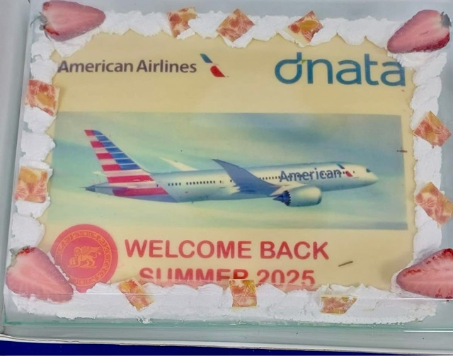 Ieri vi avevamo dato la notizia con tutte le informazioni e le dichiarazioni. Oggi, più praticamente vi mostriamo grazie a dnata anche la torta predisposta e poi distribuita a bordo ai passeggeri che oggi erano prenotati sulla Venezia-Philly! Il messaggio “welcome back summer 2025” é eloquente.