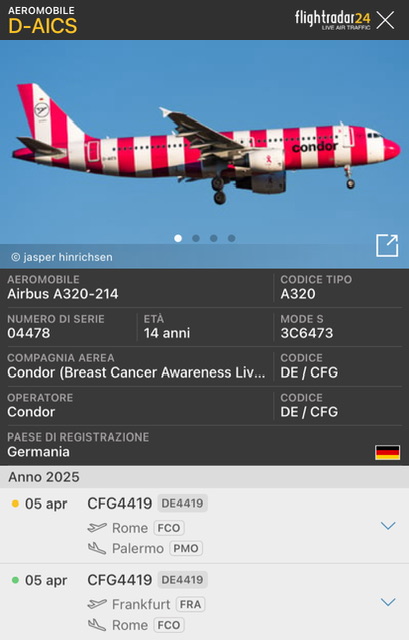 É un aereo dalla colorazione particolare quello che ha scelto Condor per iniziare la rotta Francoforte – Palermo via Roma Fiumicino.