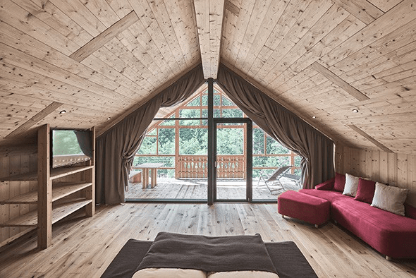 Dettagli di design e sensazione di benessere palpabile, lo stile di Tenne Lodges & Chalets di Racines (BZ) è nella raffinatezza glam della semplicità ricercata