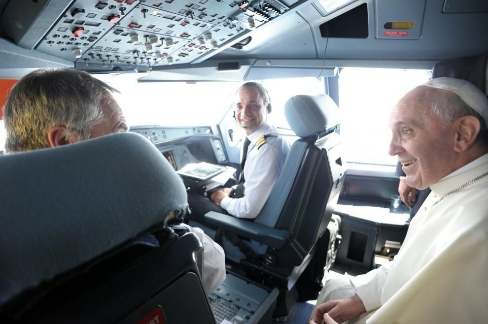 Lo vogliamo ricordare con questa immagine aeronautica quando in uno dei suoi viaggi pastorali si e’ intrattenuto durante il volo con l’equipaggio di uno dei voli charter cheo hanno trasportato.