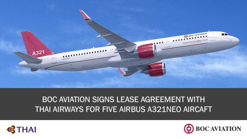 BOC Aviation Limited (“BOC Aviation” o la “Società”) è lieta di annunciare di aver collocato cinque Airbus A321NEO dal suo portafoglio ordini con Thai Airways International Public Company Limited (“THAI”). Tutti gli aeromobili saranno dotati di motori CFM LEAP-1A.