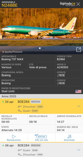 É giunto a Guam il terzo aereo che ha lasciato la Cina con direzione USA per la questione dazi. Si tratta di un Boeing 737-8 N248BE, che era previsto per la compagnia aerea Air China. L’aereo doveva assumere la imatricolazione B-255P.